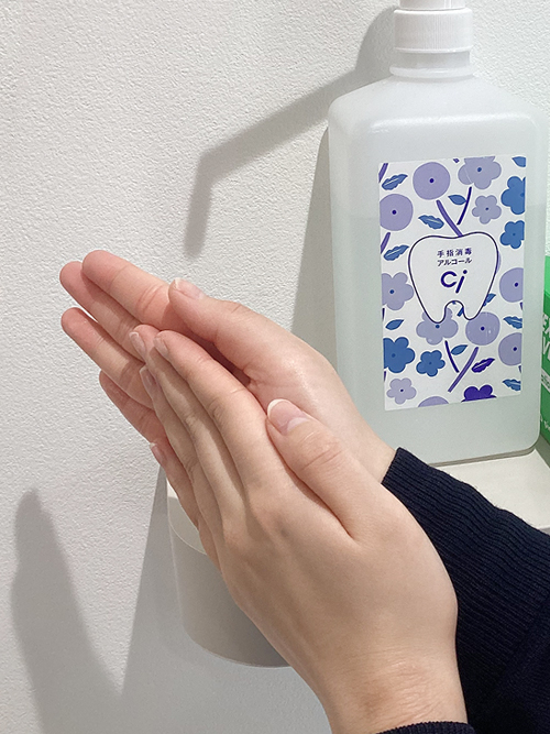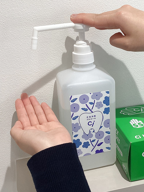 受付にも患者様用に手指消毒剤を置いていますので、是非ご利用下さい。