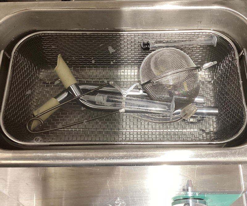 血液や体液などの汚れを分解除去できる酵素系の薬液や、洗浄剤、超音波洗浄器等を用いて洗浄を行っています。