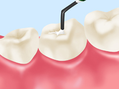 歯に付着した菌が酸を吐き出し、歯の表面のエナメル質を溶かすことで進行していきます。