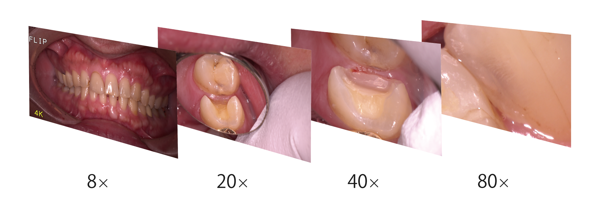 画像のように、裸眼と拡大鏡下での見え方には大きな違いがあります。院長は症例に合わせて裸眼、3.5倍、6倍の3通りの方法で治療を行っています。