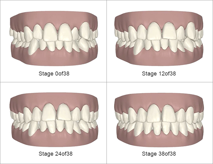 - 治療計画レントゲンや歯の模型などの検査結果をもとに作成した3Dコンピューター画像にて、治療開始から完了までのシミュレーションを行います。このとき、ご自分の歯がどのように動いていくのかを、立体的なアニメーション画像でご確認いただくことができます。治療計画にご承認をいただくと、矯正の期間・料金が正確に決まります。