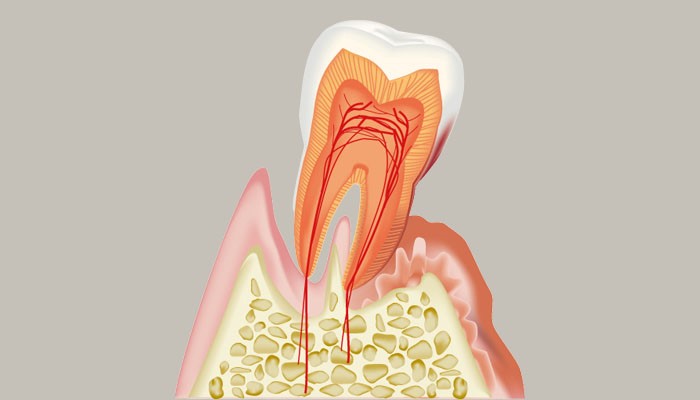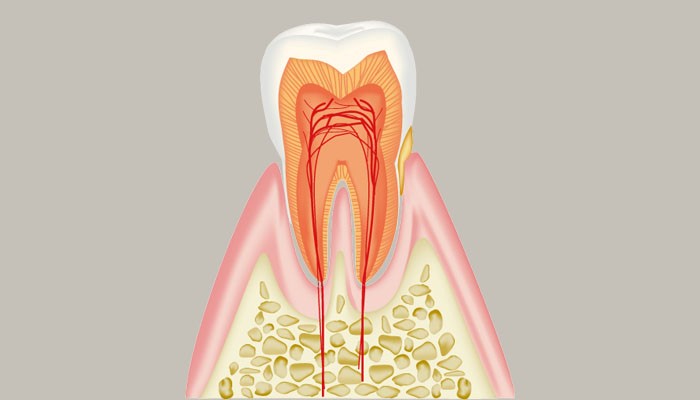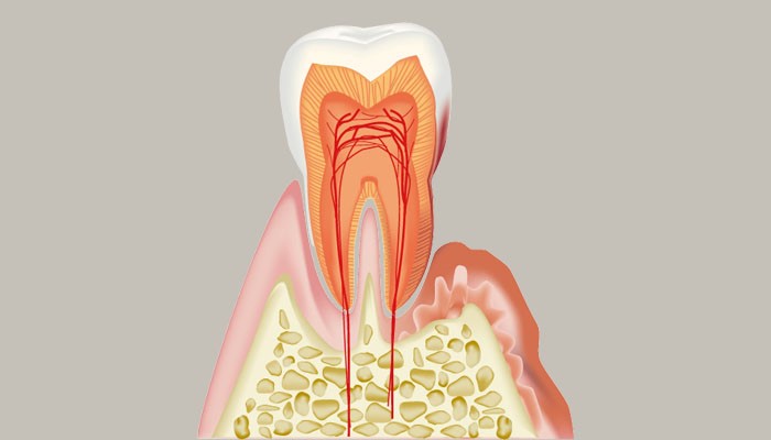歯と歯ぐきの間「歯周ポケット」が少し深くなり始め、歯ぐきには軽く炎症が起きています。歯みがきをすると出血することもありますが、痛みなどはまだ出ない時期です。